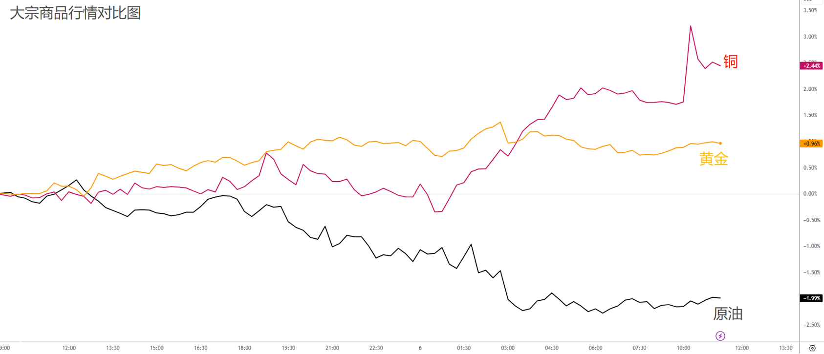 黄金和铜:虽然日内的走势并不相同,但其实金铜短线的表现非常相似。都受到关税推迟的利好,再加上美元的下跌,金属类大宗商品整体表现良好。