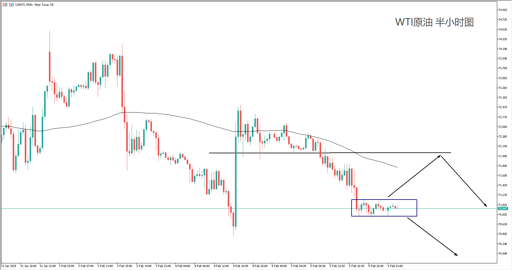 交易策略:(趋势跟随)突破跟空快进快出,或回踩高位看空