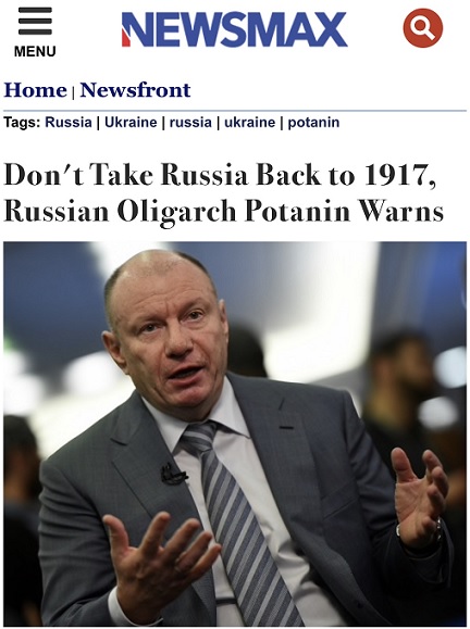 诺里尔斯克镍业(Norilsk Nickel)总裁波塔宁(Vladimir Potanin)说,没收入侵乌克兰后逃离俄罗斯的公司的资产,将会打击投资者几十年来的信心,把俄罗斯带回1917年布尔什维克革命(Bolshevik Revolution)的灾难日子。