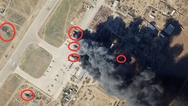 乌克兰军队说,他们对赫尔松机场进行空袭,该机场现在是俄罗斯的空军基地。从停机坪拍摄的卫星图像显示,有7架俄罗斯直升机被摧毁或损坏,其中一些被烈火吞噬。