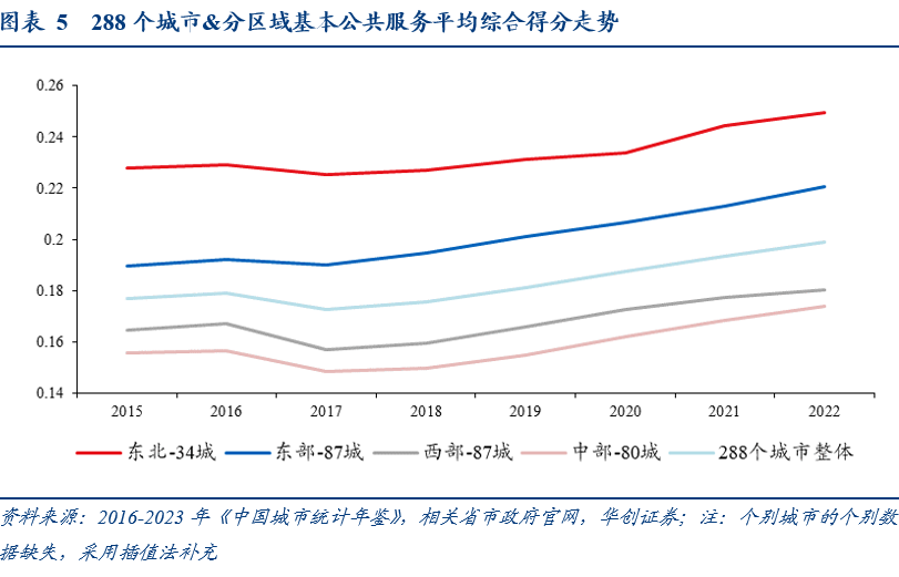 地方政府是基本公共服务的重要提供方,因此基本公共服务均等化在一定程度上反映的地区之间的差异。因此,这部分我们主要关注城市之间,基本公共服务均等化水平的变化情况。