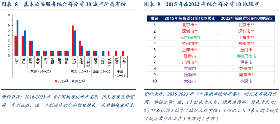 进一步观察综合得分前10%的“尖子生”(约30个城市):