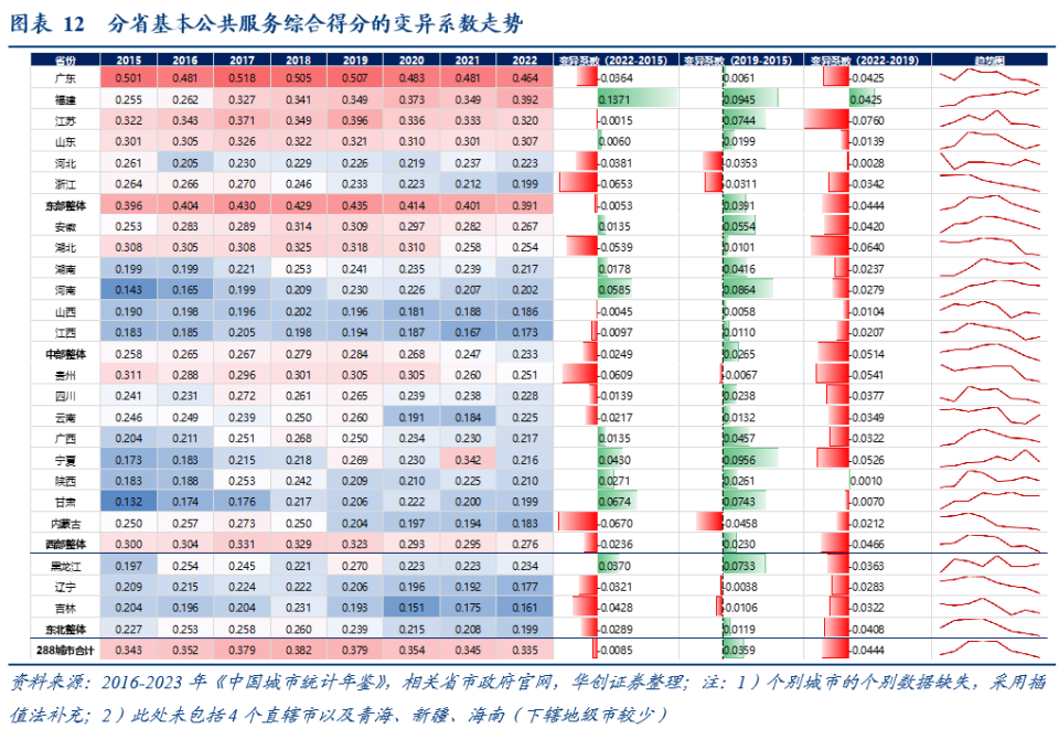 2019年变异系数下降-0.0022,2020-2022年年均下降0.044,2022年变异系数数值已低于2015年水平;此前2015-2018年变异系数整体呈现上行趋势(4年间变异系数上升0.036),即不均衡程度有所上升。
