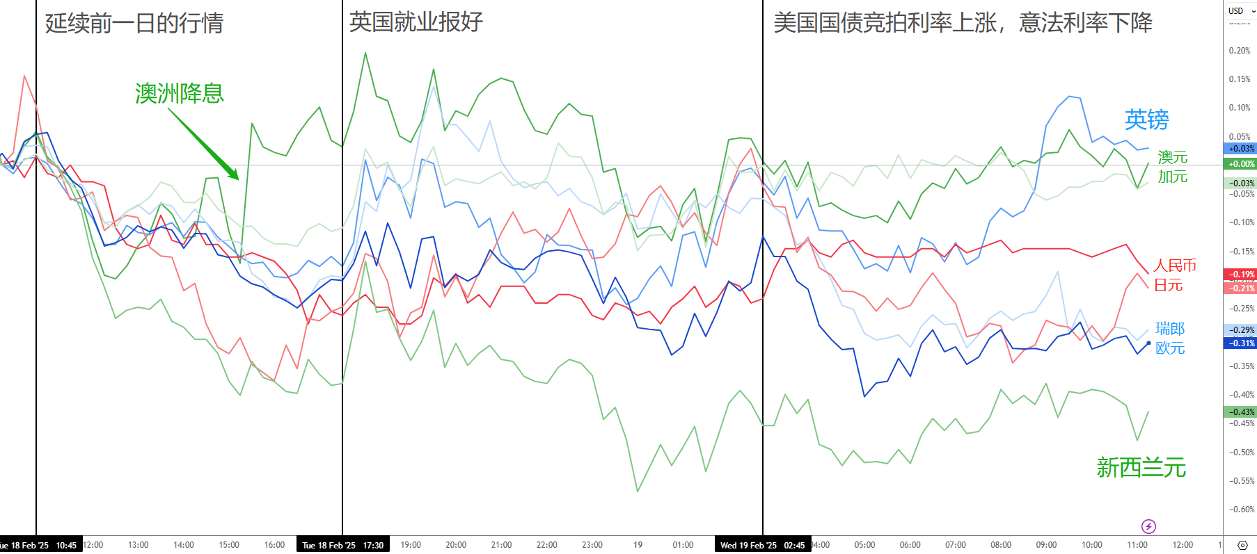 澳洲联储明明降息了,但国债利率却持续上涨,关键是主席布洛克的鹰派态度。澳元随之上涨,澳股随之大跌。特朗普今早称汽车、半导体和药品的25%关税将在4月2日公布,美元目前已经止跌转涨。