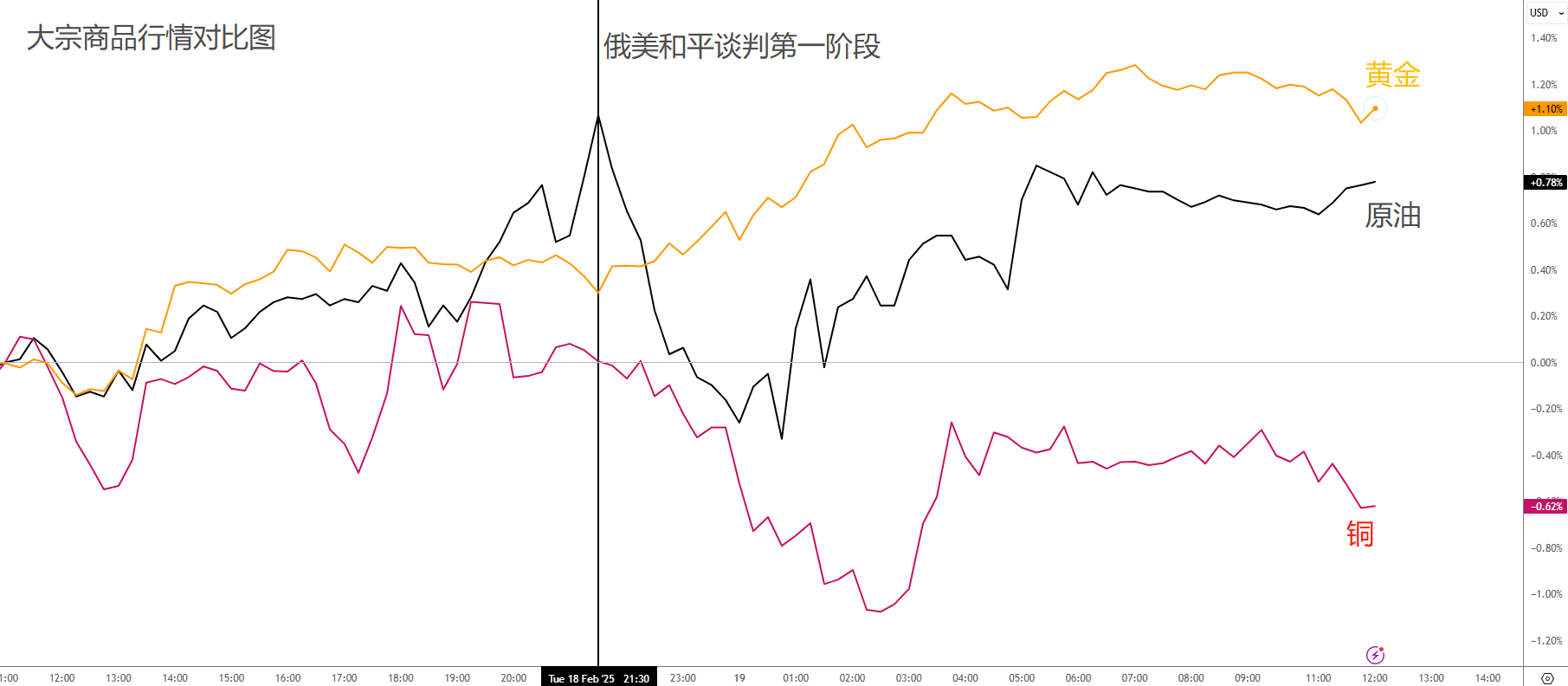 大宗商品市场波动反倒是更大,可能与美俄和平计划有关。昨日历经四个半小时的谈判,俄美达成了四点共识。分别是俄美外交正常化、尽快解决乌克兰冲突、未来经济利益合作以及保持解除。同时还提出和平三部曲:停火协议、乌克兰举行新选举,随后签署和平协议。(直接将泽连斯基排除在外了)